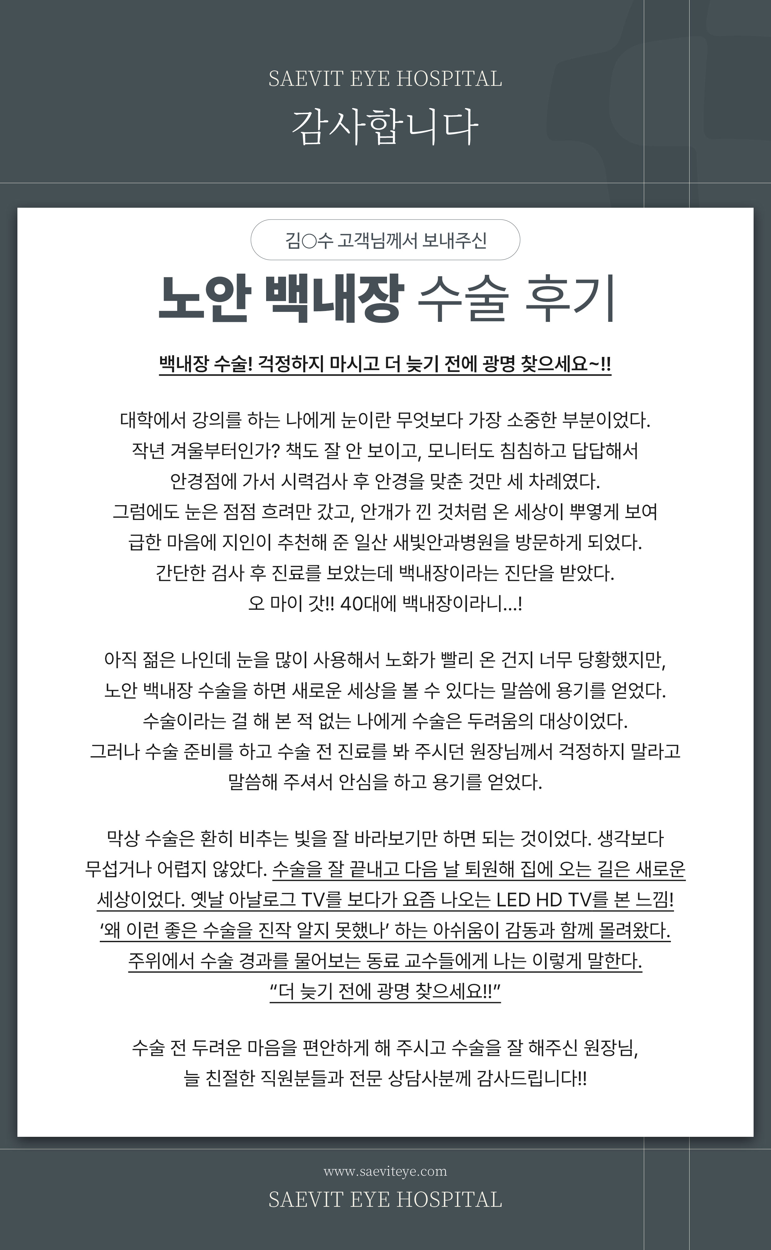 김O호 고객님께서 보내주신 백내장 수술 후기